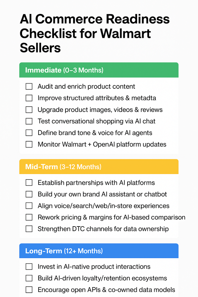 A simple checklist for Walmart and Amazon sellers navigating AI-first commerce.